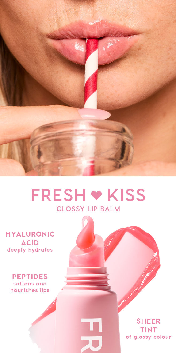 Your faves, your way. 15% off. Choose any 3 Fresh Kiss Glossy Lip Balms to make your very own custom bundle! This plush, ultra-cushiony formula features yummy flavors and a hint of colour infused with nourishing Peptides + hydrating Hyaluronic Acid. From fruity flavors to gourmand sweets – pick exactly what you want, it’s your call bestie.